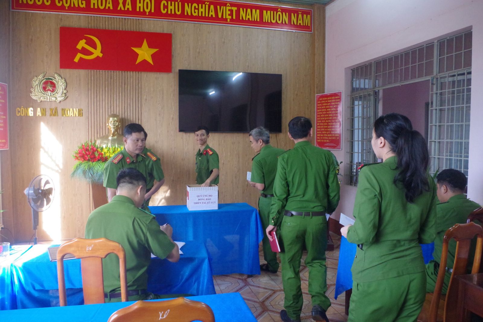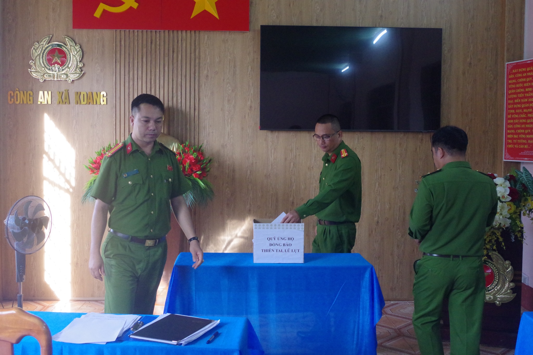 Hưởng ứng lời kêu gọi của Ủy ban Mặt trận Tổ quốc Việt Nam về việc chung tay hỗ trợ đồng bào các tỉnh miền Trung chịu ảnh hưởng nặng nề do thiên tai, bão lũ, sáng ngày 04/11/2025, Công an xã KDang đã tổ chức phát động đợt quyên góp ủng hộ trong toàn đơn vị.