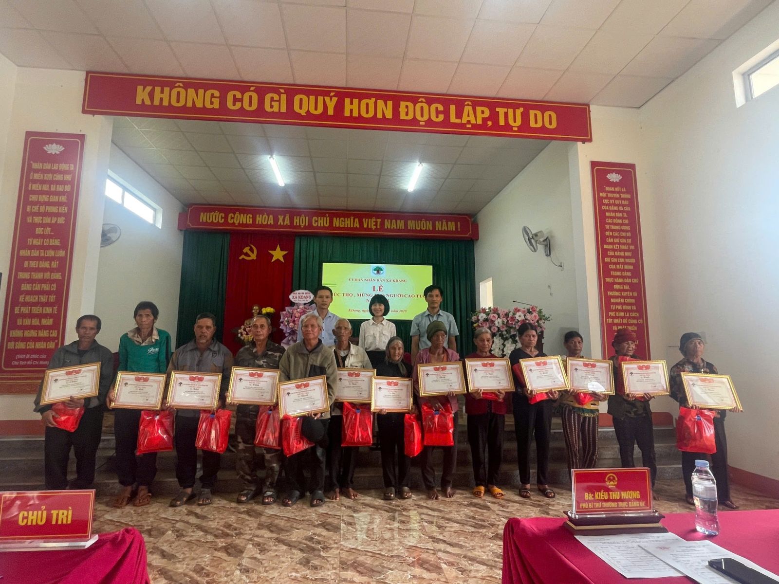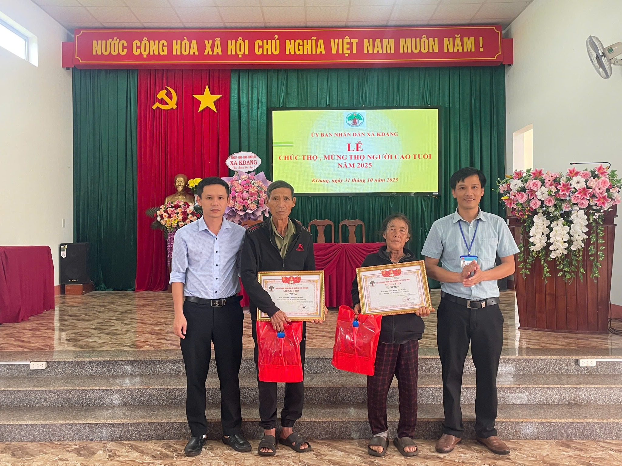 Nhằm phát huy truyền thống "Kính già, trọng thọ" tốt đẹp của dân tộc và thể hiện lòng tôn kính, sự quan tâm chăm sóc của toàn xã hội đối với người cao tuổi, sáng ngày 31/10/2025, Ủy ban nhân dân (UBND) xã KDang đã long trọng tổ chức Lễ chúc thọ, mừng thọ cho các cụ cao niên trên địa bàn xã nhân kỷ niệm 34 năm ngày Quốc tế Người cao tuổi.